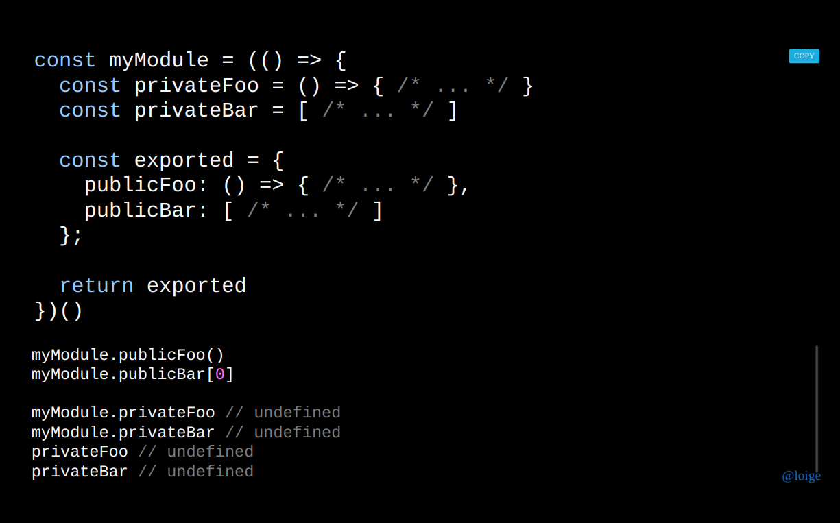 - 각 모듈은 자신만의 스코프를 보장해준다.